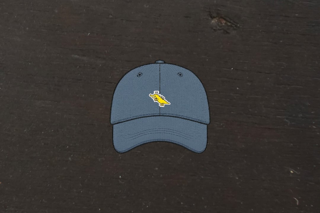 四国こんぴらさん100段目で生まれた、KAGAWANI(カガワニ)の刺繍デザインキャップ(ブルーグレー)です。
